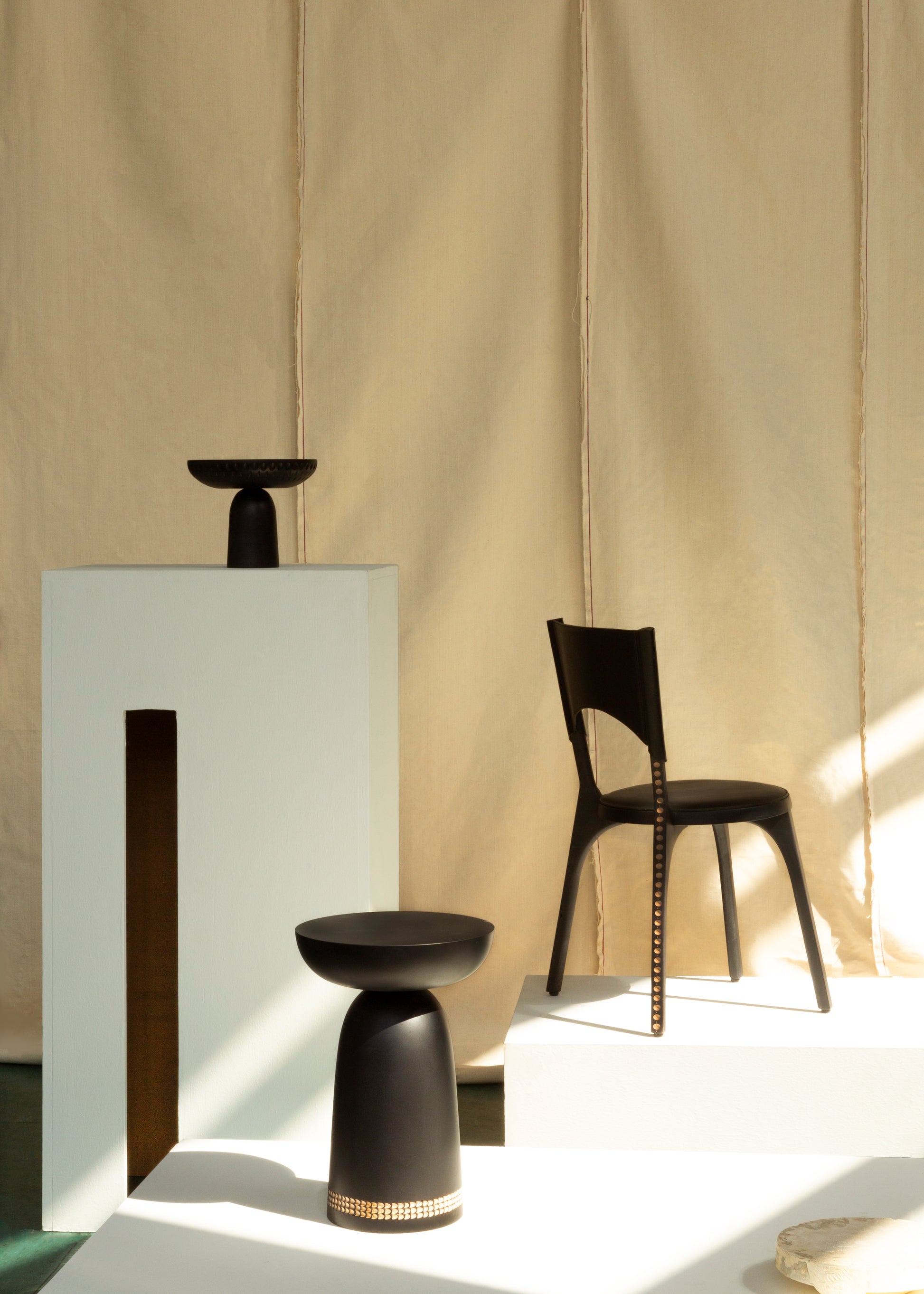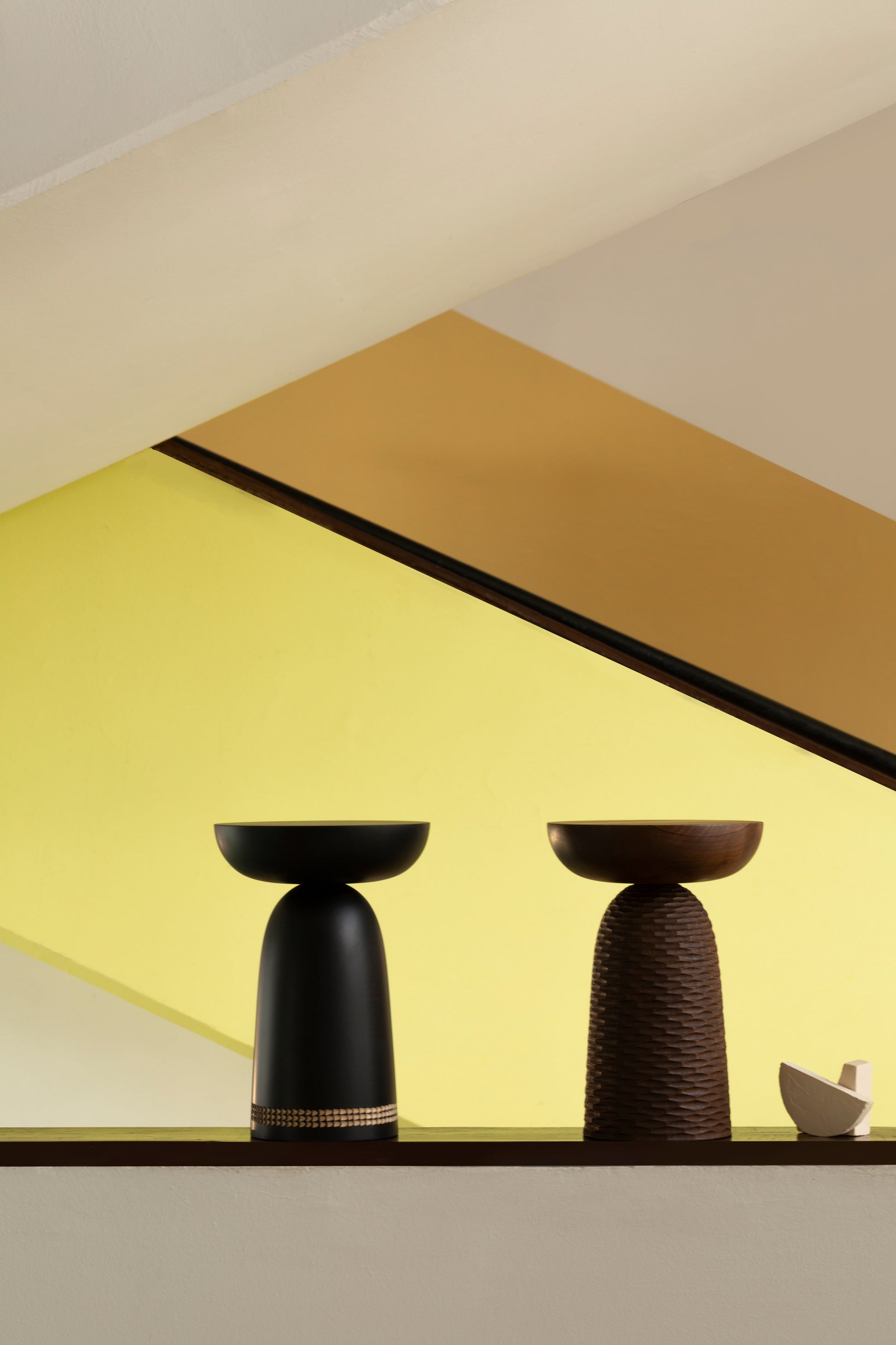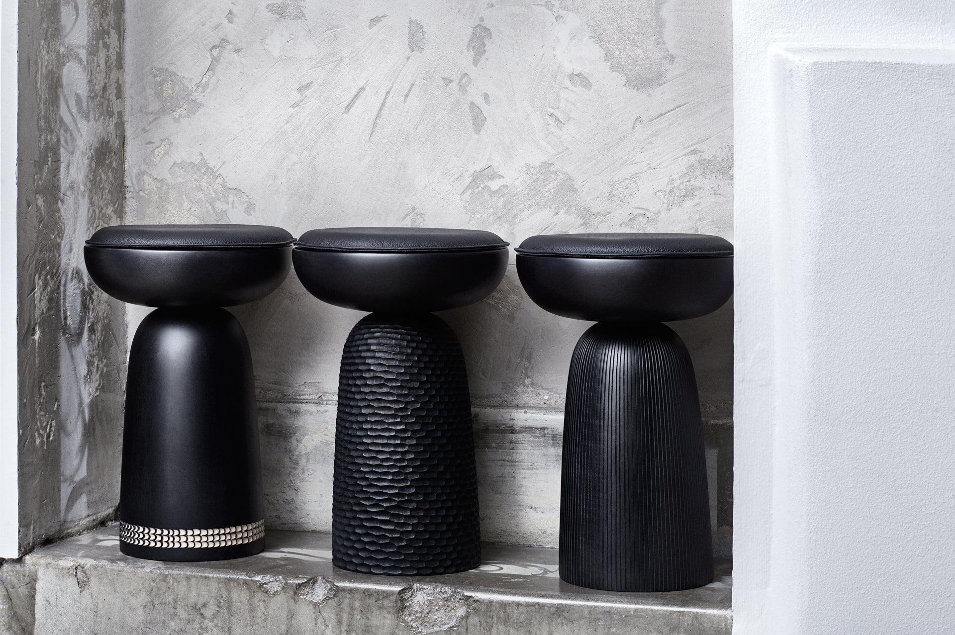 Nera pagamintas vien iš medžio masyvo, pasižymi paprastu ir švelniu skulptūrišku grožiu. Jis gaminamas su keliais skirtingais rankomis raižytais raštais, kurie sustiprina taburetės lytėjimo pojūtį, o kiekvienas raižinio raštas suteikia jai savitą charakterį.